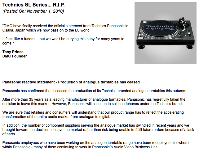 Ich bin selbst stolzer Besitzer zweier Technics SL-1210MK2 – gekauft 1992 bei Eschenmoser in Basel und konnte daher die Horrormeldung von 2010 des japanischen Entertainment-Multi Panasonic überhaupt nicht fassen:
